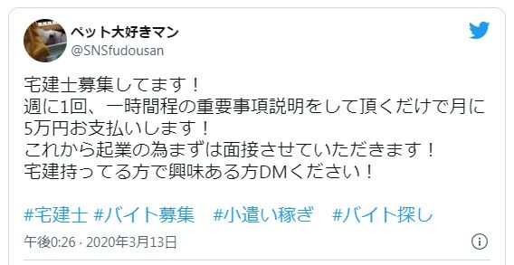 時給相場は1500~2000円でこれに資格手当て1万~2万円 重要事項の説明に1万円の歩合があり、宅建事務は週3のバイトでも20万円以上稼げます。